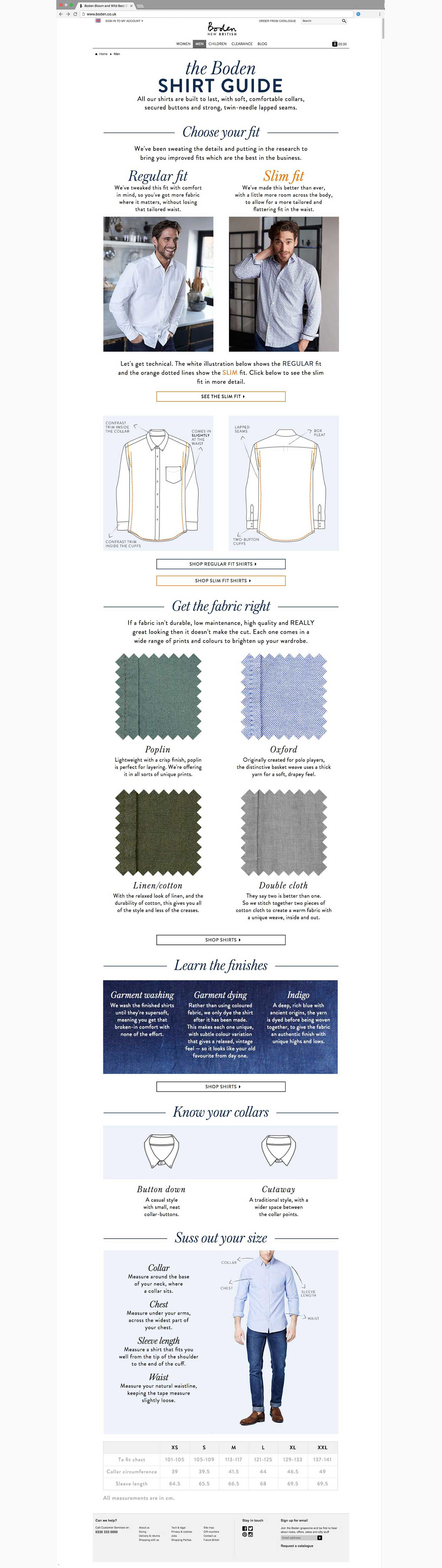 In order to make online shopping easier, this microsite features information about fits, fabrics etc. Using animations and illustrations, key features and USPs are highlighted.