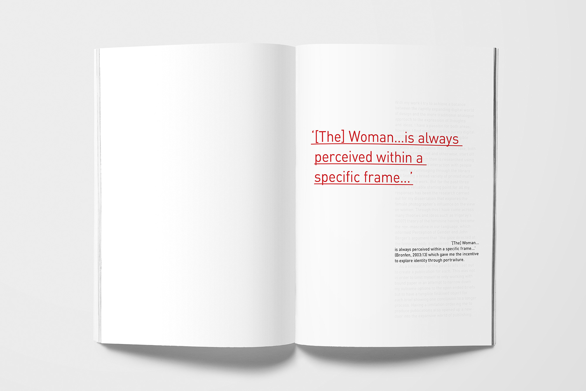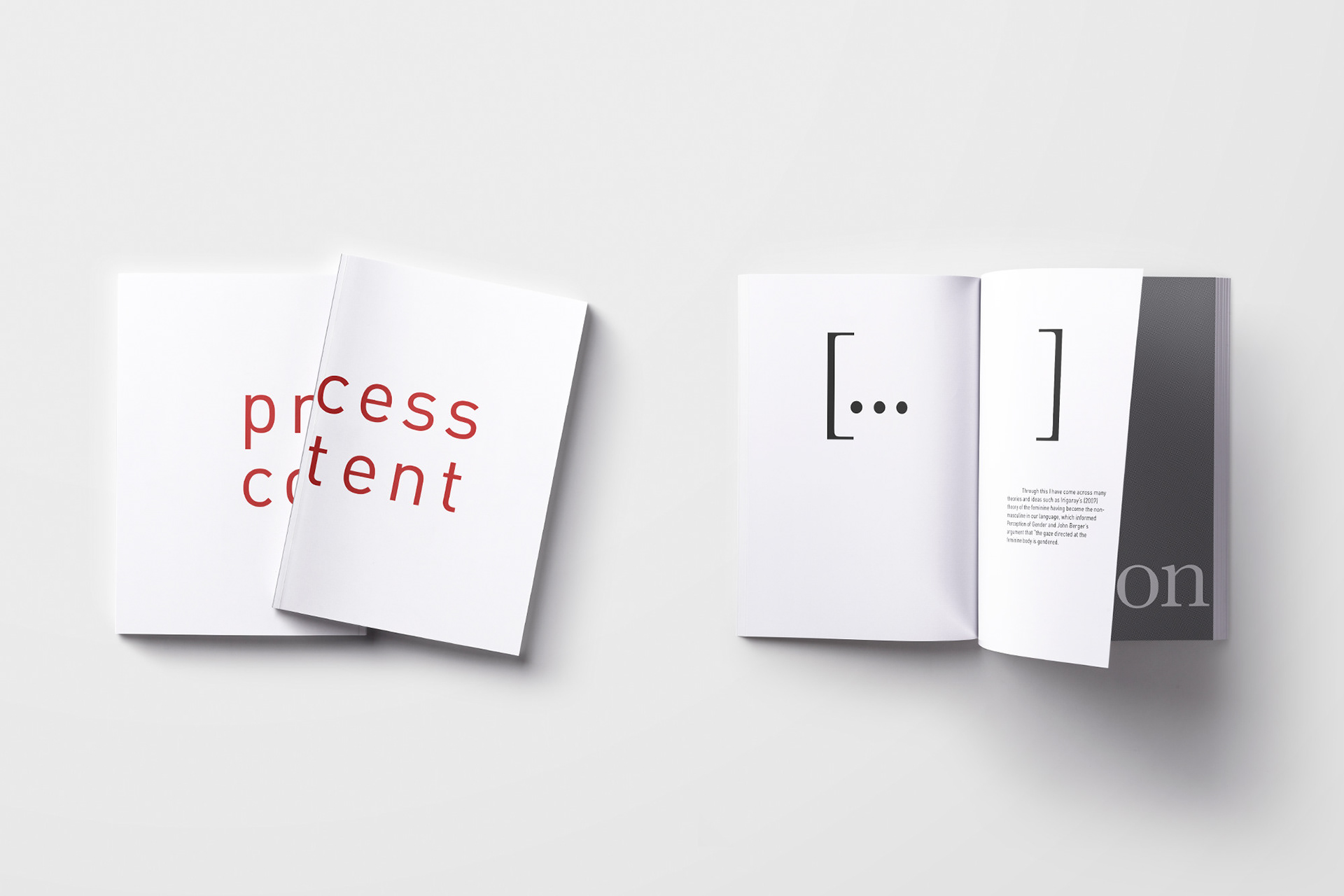 A 32-page publication exploring the correlation of process and content through typography. It is set in DIN Pro Light and Baskerville. Throughout the publication, key phrases are highlighted to emphasise the topic discussed.